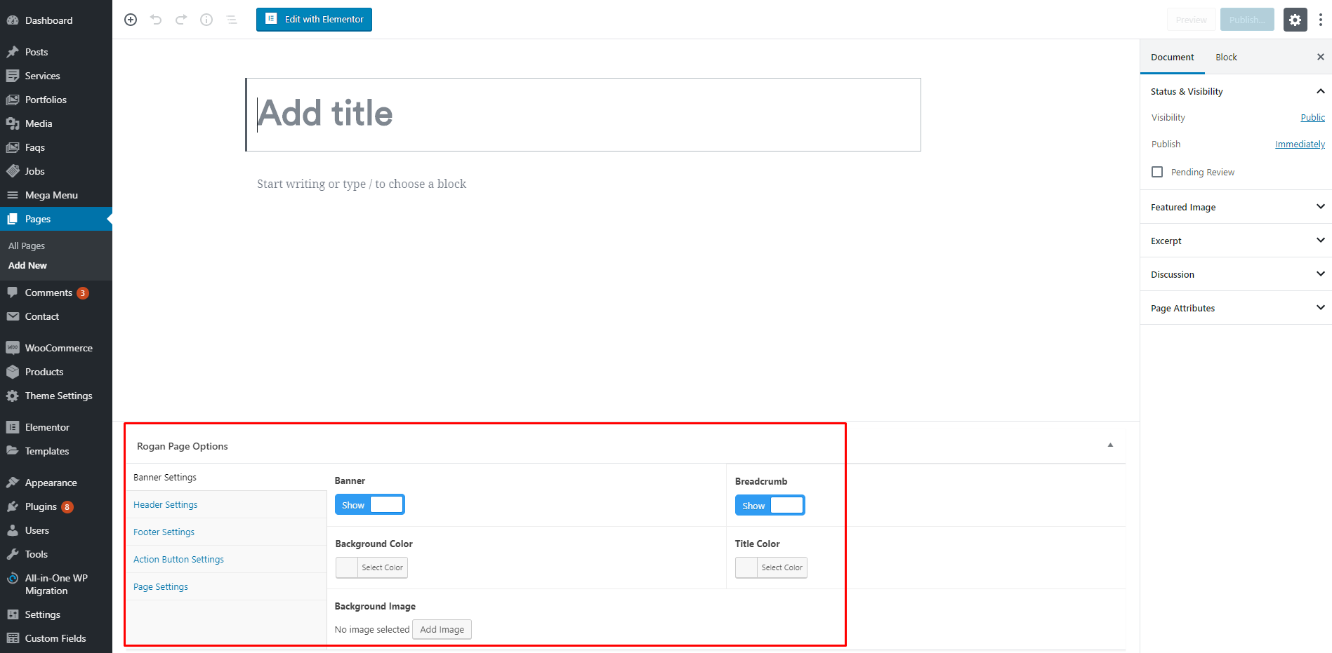 For example, you can choose an individual logo or header style for a specific page only from Rogan Page Options. You can find the Page Options at the bottom of the WordPress page editor.