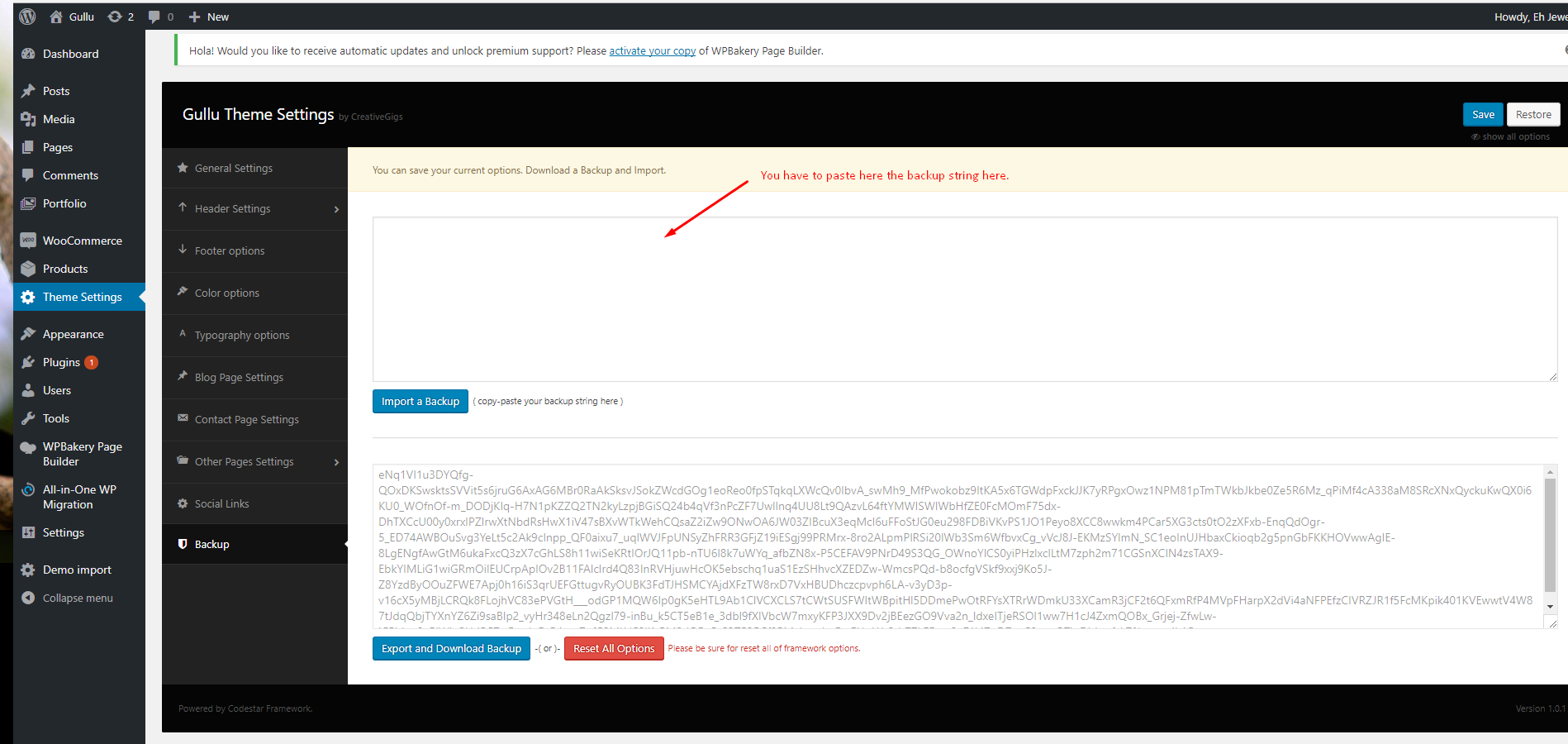 Note: If the option data do not import then you have to import it manually. Navigate to ‘Theme Settings > Backup’. Then copy-paste the backup string here and click on the Import a Backup button. You will find the backup string in the options.txt file.